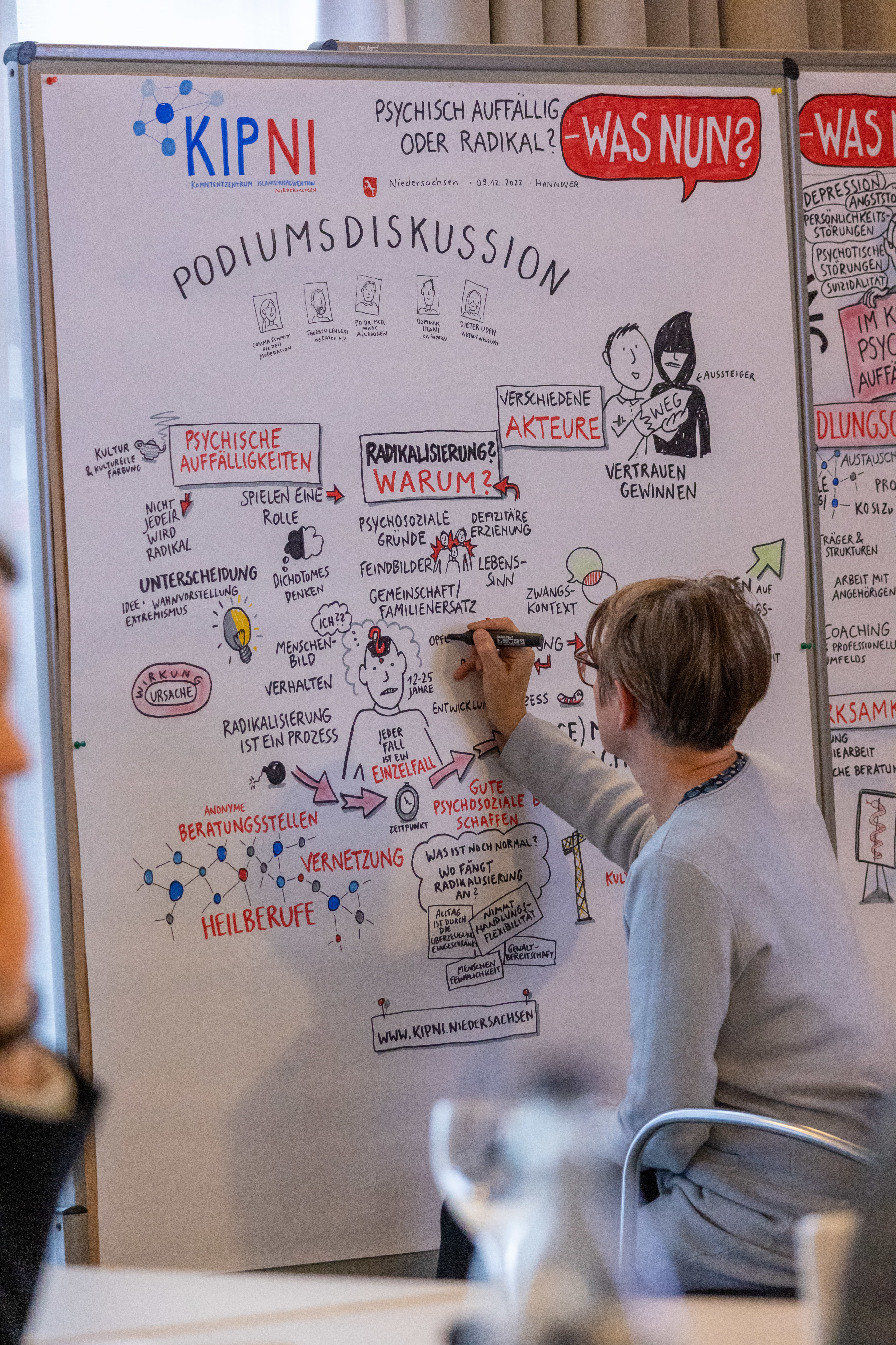 Die Veranstaltung wurde grafisch durch Anja Weiss (Graphic Recording, Illustration & Grafik-Design) begleitet. Sie stellte ihre Eindrücke dem Publikum zum Abschluss der Veranstaltung vor.