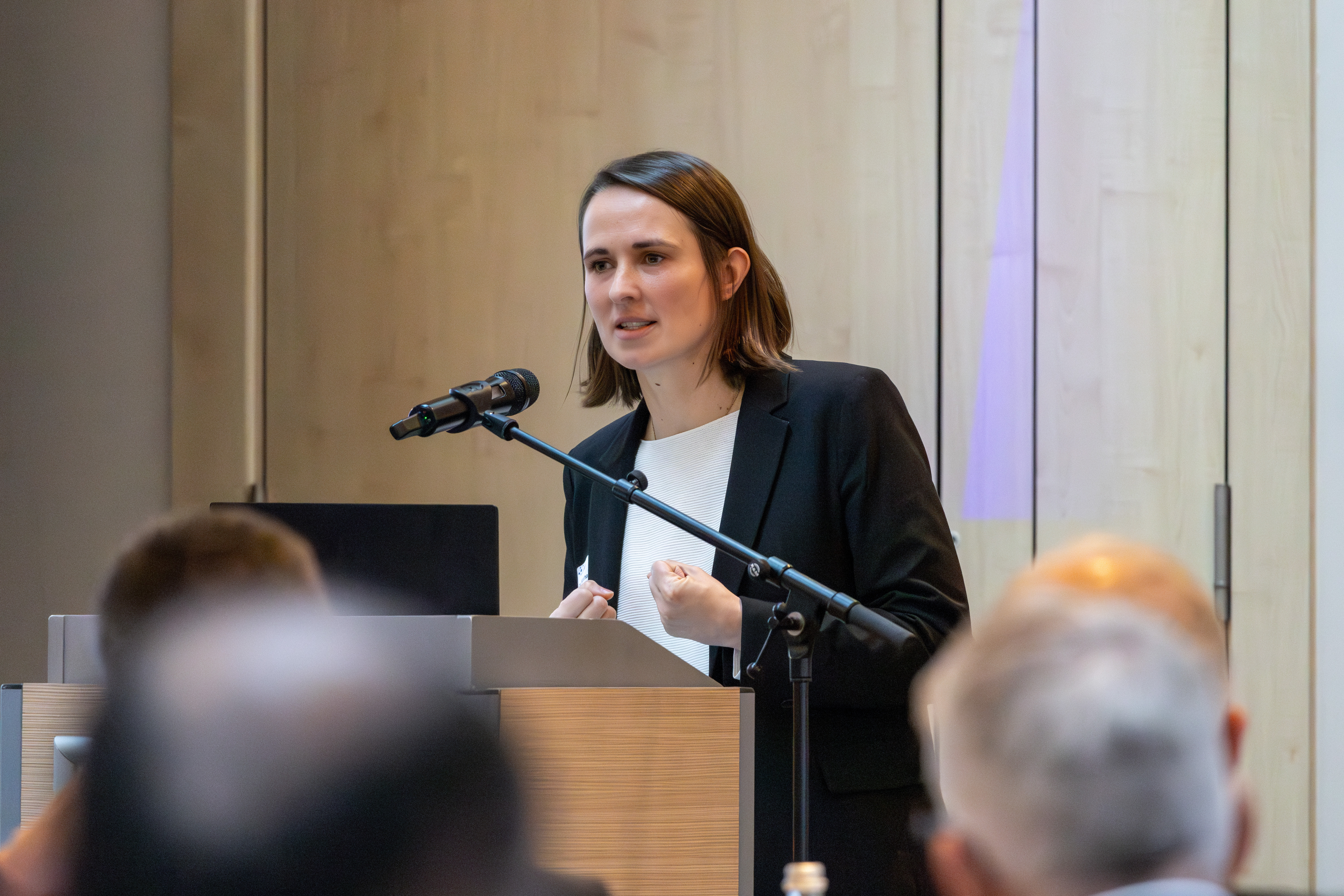 Anschließend stellten die zwei Geschäftsführerinnen des KIP NI, Daniela Schlicht, Verfassungsschutz Niedersachsen, und Lisa Borchardt, Landeskriminalamt Niedersachsen, den Geschäftsbericht vor. Dabei wiesen sie auch auf die Notwendigkeit hin, die richtige Balance zwischen Sicherheitsbelangen und präventiven Maßnahmen zu finden – welche im KIP NI gezielt ausgelotet werden.