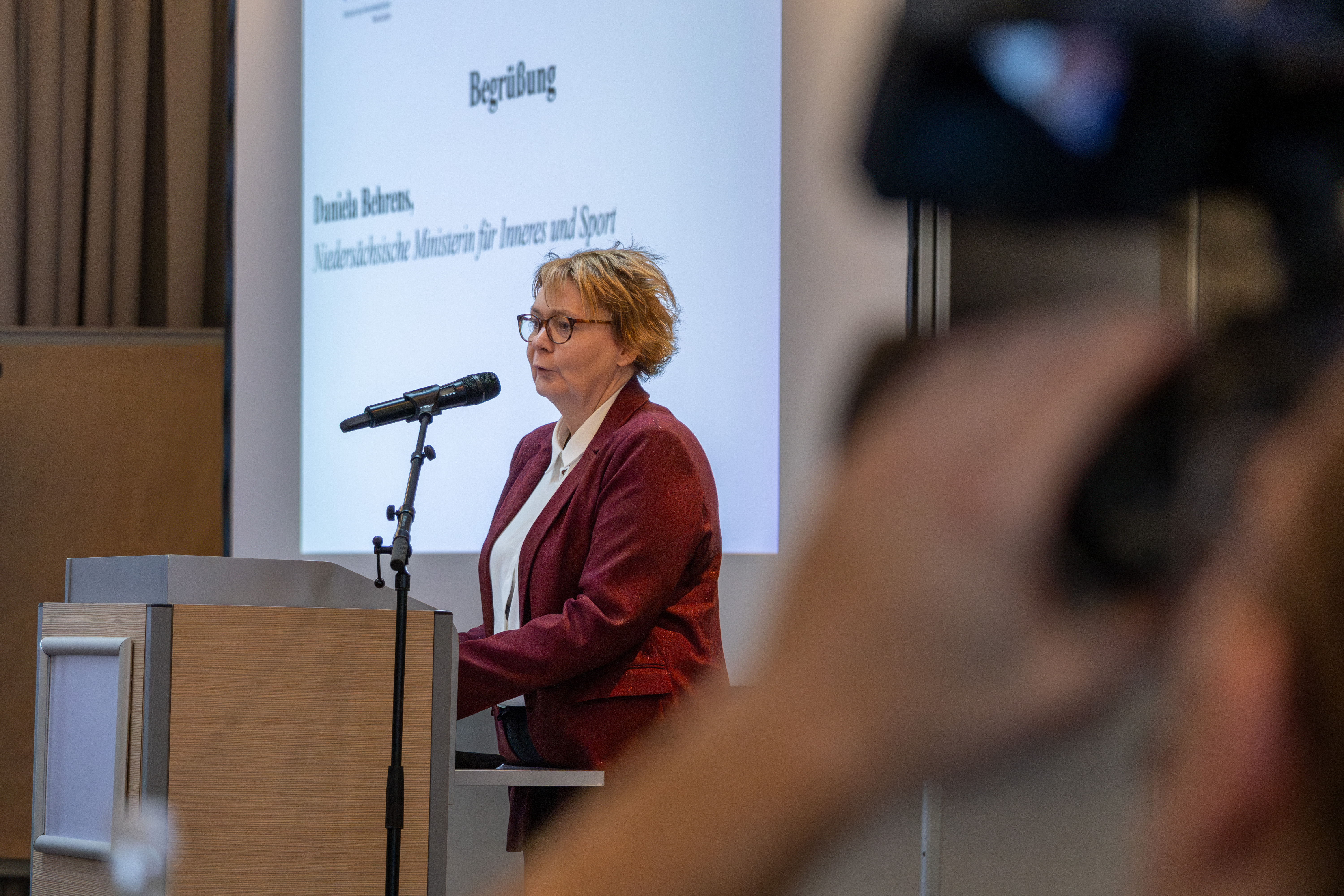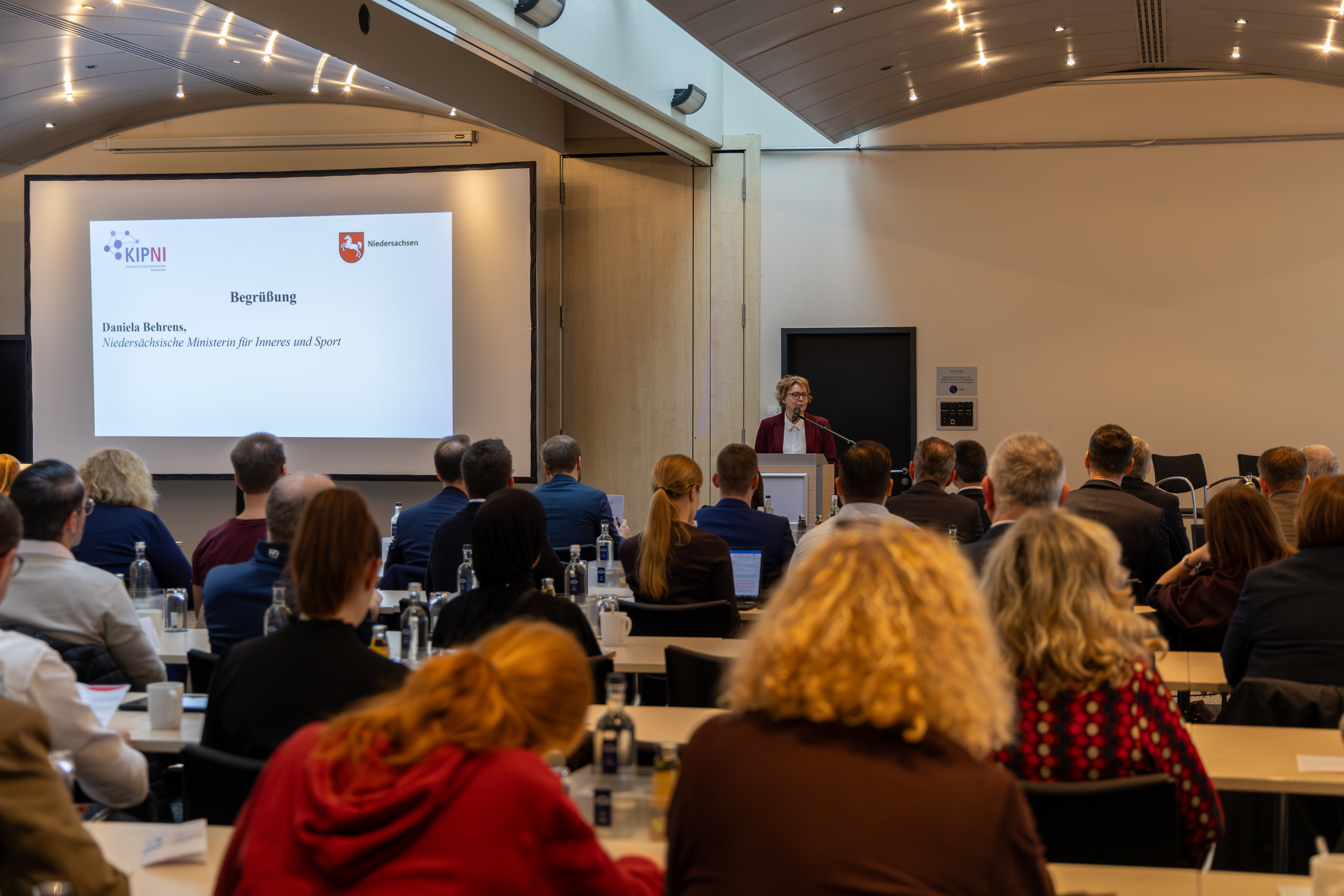 Die Niedersächsische Ministerin für Inneres und Sport, Daniela Behrens, begrüßte die rund 150 Gäste und wies auf die guten Erfahrungen der Zusammenarbeit innerhalb des KIP NI sowie dessen Vorbildfunktion auch auf Bundes- und internationaler Ebene hin. In Bezug auf das Thema der Tagung betonte die Ministerin: