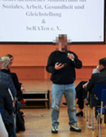 Der Workshop „Radikalisierung und sozialer Nahraum, Quartiersentwicklung, lokale Netzwerke“ stellte die präventive Rolle der Gemeinwesenarbeit durch Netzwerke und lokale Projekte dar und unterstrich die Wichtigkeit des frühzeitigen Aufbaus von Vertrauen zur Schaffung von Resilienzen gegen Radikalisierung. Dieser Workshop wurde von Mitarbeitenden der LAG Soziale Brennpunkte Niedersachsen e. V. durchgeführt.